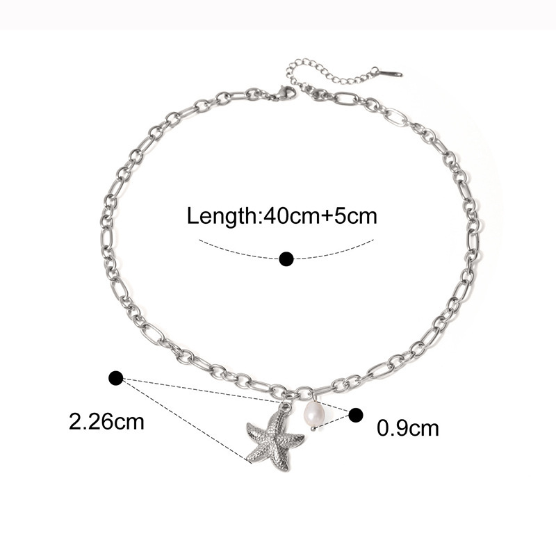 Color: [XLH499] Starfish pearl necklace gold,[XLH25] Starfish pearl necklace steel color